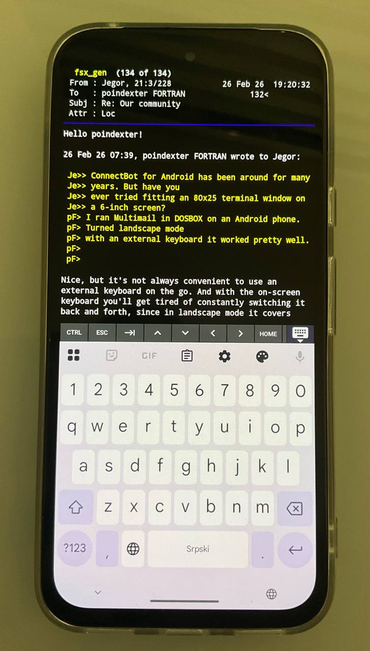 ConnectBot for Android has been around for many years. But have youI ran Multimail in DOSBOX on an Android phone. Turned landscape mode