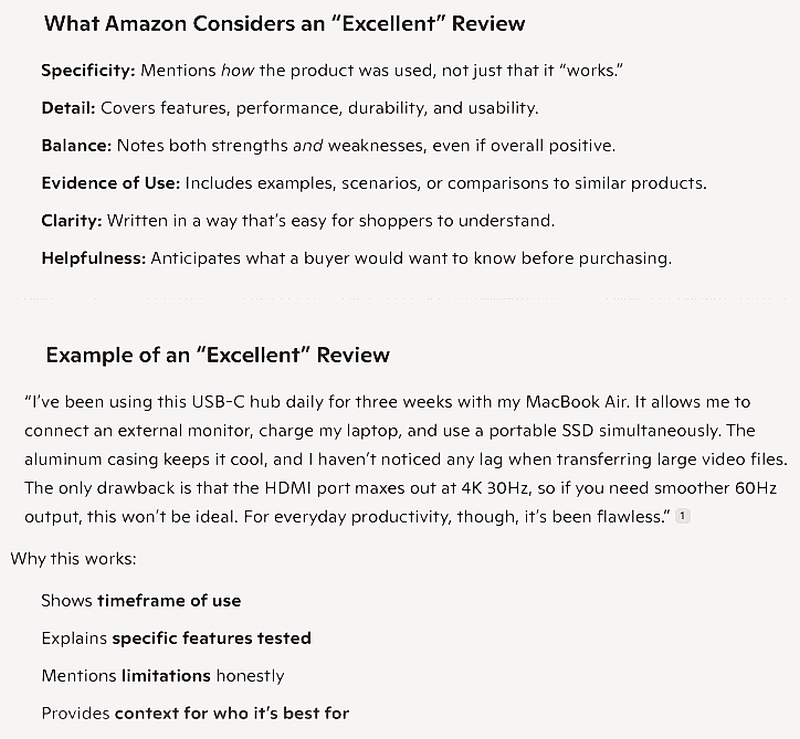Sellers can tell when a review is complete and balanced and fair.