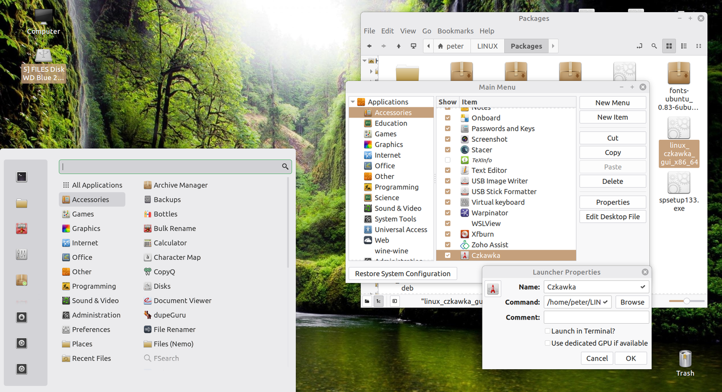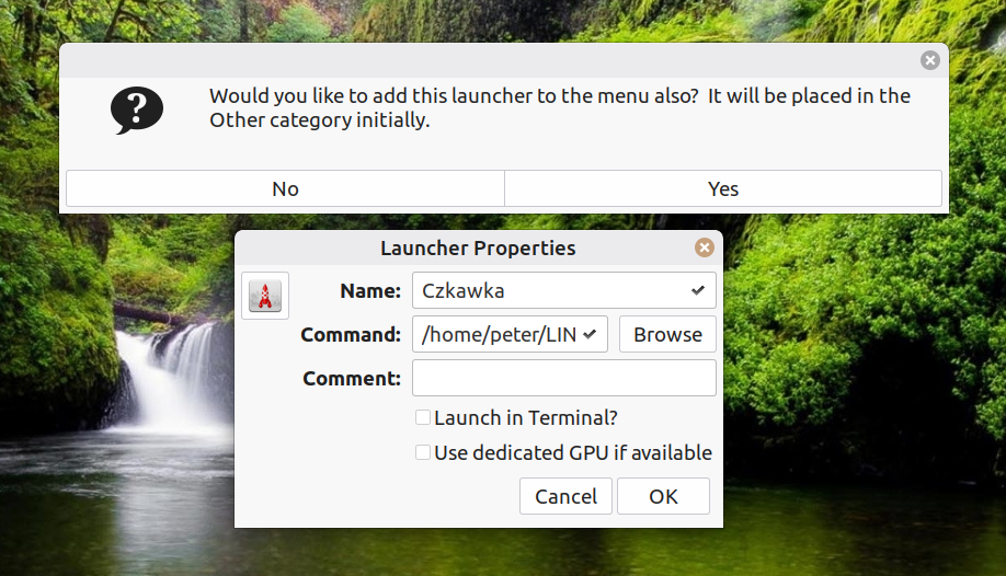 I had tried that, but even tho LM says it will create a menu item, it doesn't. viz: https://auslink.info/linux/launcher.png