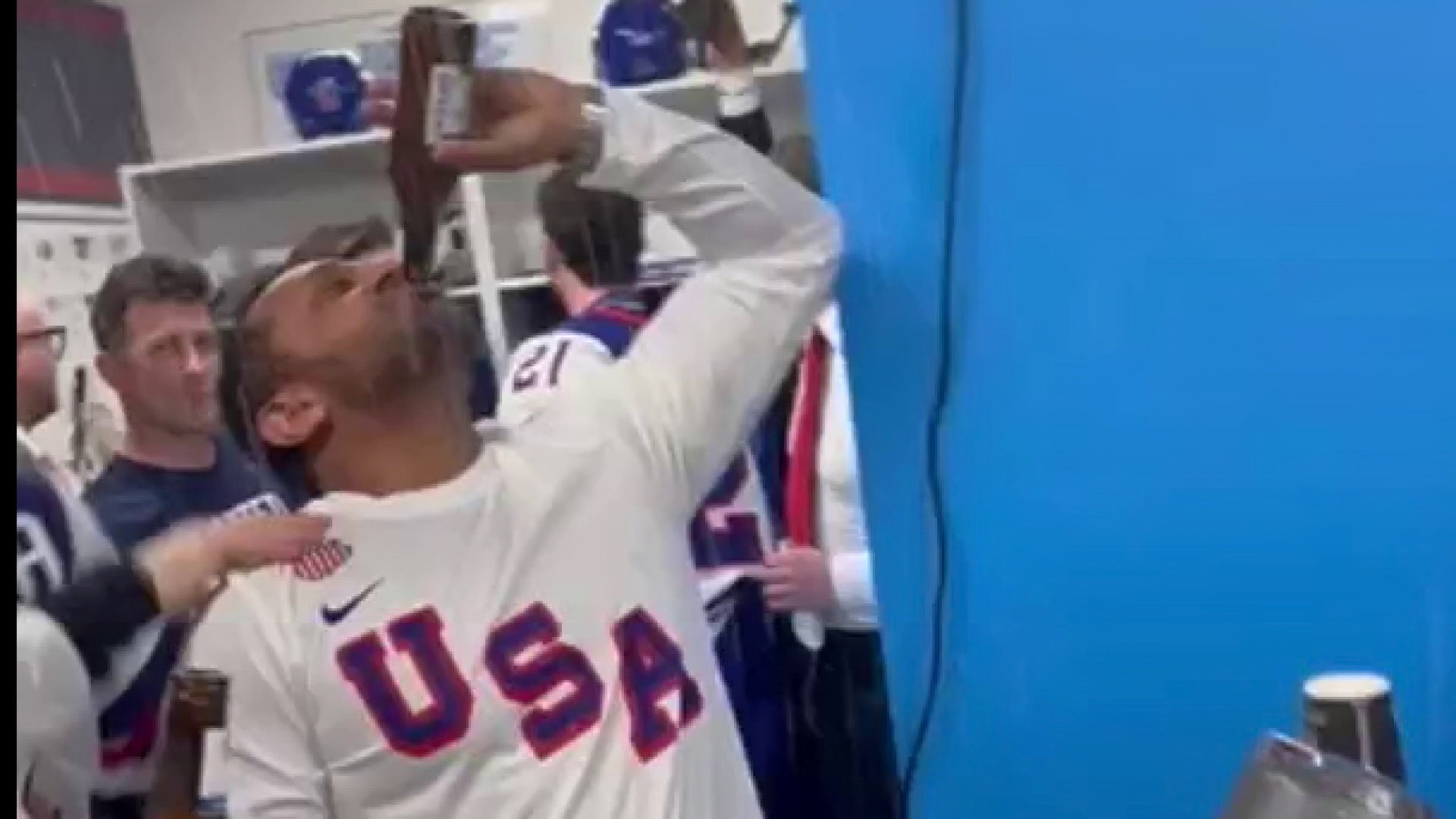 He is seen Chugging a beer in a fanatic way with the team. Why did they