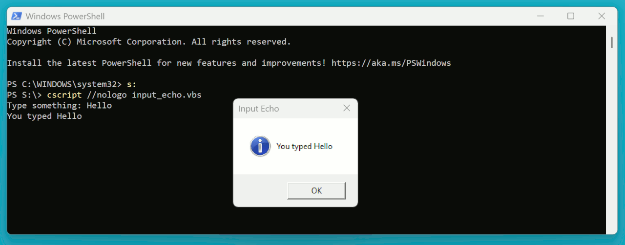 Prepare a vbscript CSCRIPT program which opens a window,